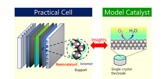 Fuel cells and water electrolysis play a vital role in maximizing the potential of renewable energy. The electrocatalysts used in these devices are key components that significantly affect cell performance and durability, and their raw materials typically include expensive and scarce noble metals such as platinum and iridium. Experimental studies using single-crystal electrodes, in which surface composition and structure are precisely controlled, have provided valuable insights into the mechanisms of catalytic reactions and degradation, and have contributed to the efficient development of electrocatalysts.