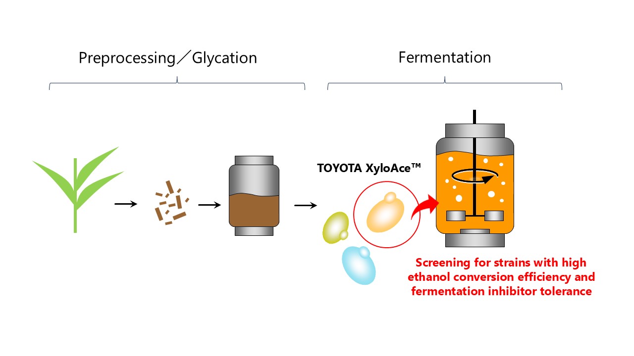 - The fermentation technology developed using TOYOTA XyloAce™ is currently being utilized at the bioethanol production research facility of the Next Generation Green CO₂ Fuel Technology Research Association.