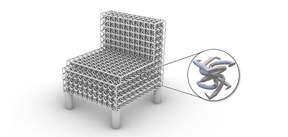 Mono-material design is an effective way to achieve sustainability and a circular economy. However, most industrial products are manufactured using a variety of materials to create multifunctional properties and characteristics. One way to resolve this trade-off is varying local structures of a mono material to achieve a wide range of mechanical properties. For example, Young’s modulus can be modified by adjusting the relative density of the structures. However, for 3D-printed components, the lower limit of relative density depends on the achievable dimensional accuracy.