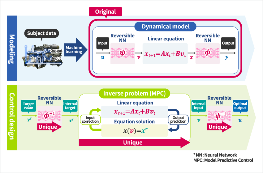 Improving the efficiency of system development is essential for quickly addressing rapid changes in social conditions, which is why data-driven system design methods based on machine learning are expected to serve as a means to achieve this. In order to further enhance control stability without relying on the nature of data, we proposed a method to learn the control object with a specially structured machine learning model. When using this model as a predictor, solutions to mathematical problems that require optimal control under various conditions (optimal control problems) are mathematically guaranteed to be unique and continuous. Currently, we are working to apply the method to engine control in order to achieve smooth control while improving acceleration and environmental performance.~{*1}