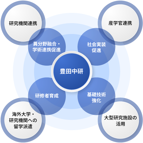 研究機関同士のシナジーにより挑戦的な研究課題への取り組みや、異分野融合による新たな技術の創出を目指しています。
