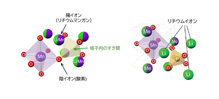 リチウムイオン二次電池の正極材料として、資源の持続可能性の観点でリスク※のあるコバルト、ニッケルを使用せず、資源の制約が少ないリチウムマンガン酸化物(無秩序岩塩型)の結晶構造を制御することで、長寿命化と高容量化を実現できることを試験電池にて実証しました