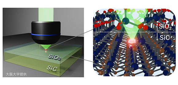 量子コンピューティングや量子通信の発展に向け、量子材料の結晶中の格子欠陥(発光中心)で見られる発光現象を応用することが提案されています。シリコンカーバイド(SiC)の発光中心は単一光子源として機能し、中でも絶縁膜とSiCの界面に局在する発光中心は、一般的な量子材料であるダイヤモンドの発光中心(NVセンター)よりも強い発光を示すことが知られています。また、SiCはパワー半導体分野で培われた微細加工プロセス技術を応用できることから、従来は困難だった集積可能な量子材料として期待されています。しかし、絶縁膜/SiC界面の発光中心の形成過程やその発光メカニズムは不明であり、研究が進展していませんでした。