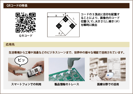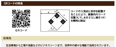 本コードでは、3頂点に目印を配置することで、背景模様の影響を受けることなく素早いコードの読取りを実現しています。またコードにデータを復元する機能を持たせることで、誤認識の確率を理論上10億分の1以下に抑えています。