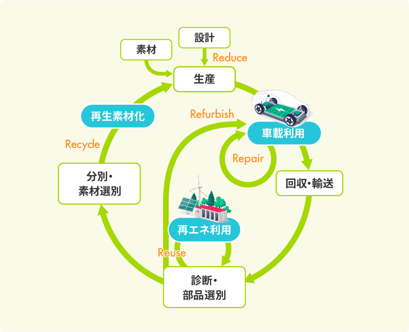 循環型モビリティ社会における再利用・再資源化を促進するシステムの概念図